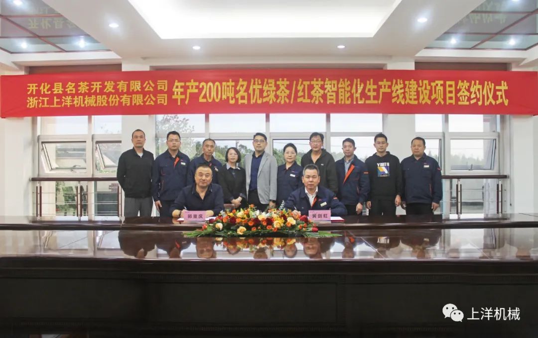 更多內(nèi)容10月24日,開化名茶開發(fā)有限公司與上洋機(jī)械正式簽約“年產(chǎn)200噸名優(yōu)綠茶/紅茶智能化生產(chǎn)線”建設(shè)項目。