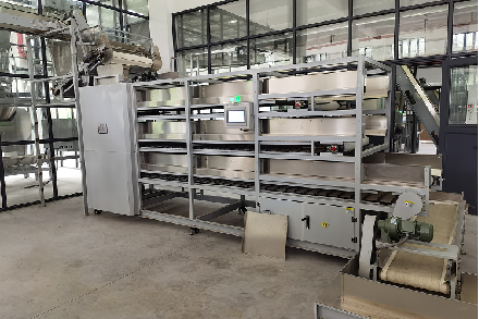 作業(yè)原理:機(jī)組采用多層、移動(dòng)行車(chē)布料,模擬自然回潮走水原理,運(yùn)行速度先快后慢、先涼后回、先薄再厚、先軟再塑,達(dá)到水分均勻的效果。