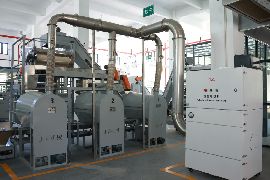 機組組成:本機組由瓶式炒干機、計量儲料斗、提升機、出料振動槽、除塵裝置、機組集成控制系統(tǒng)組成。